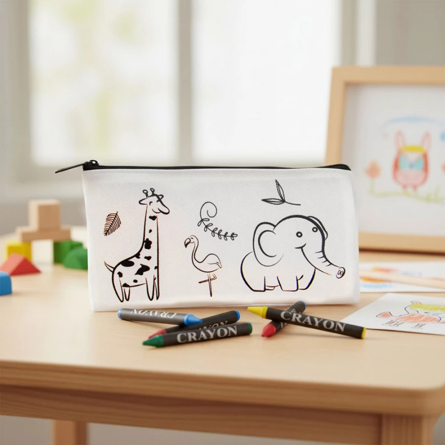 Federmäppchen zum Ausmalen, enthält 5 Wachsmalstifte in verschiedenen Farben, hergestellt aus Vliesstoff