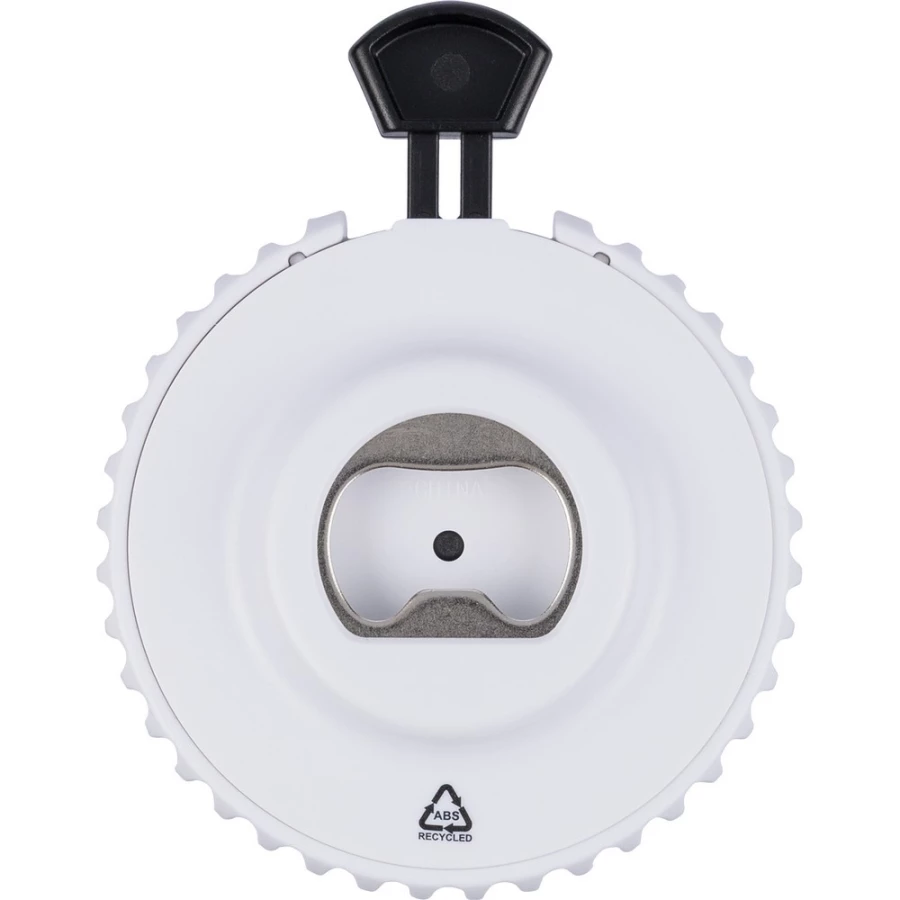 Flaschenöffner, ABS-Symbol auf dem Produkt, verpackt in einem Beutel, Produkt aus recyceltem ABS