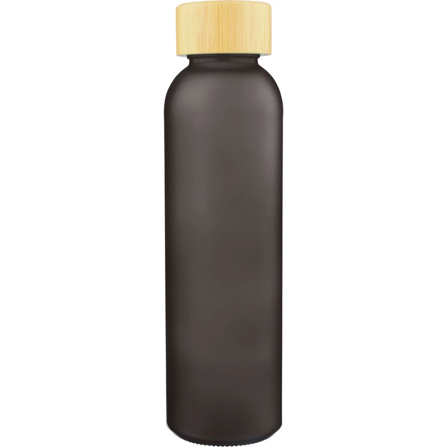Glasflasche 500 ml mit Bambusverschluss, mattes Oberflächenfinish, einzeln verpackt in einer braunen Kartonschachtel.
