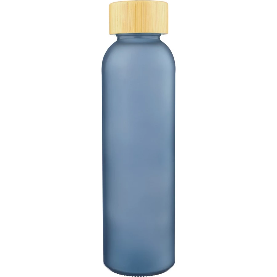 Glasflasche 500 ml mit Bambusverschluss, mattes Oberflächenfinish, einzeln verpackt in einer braunen Kartonschachtel.