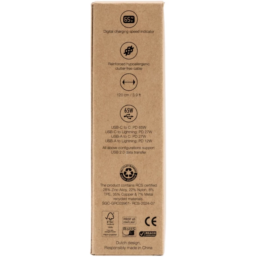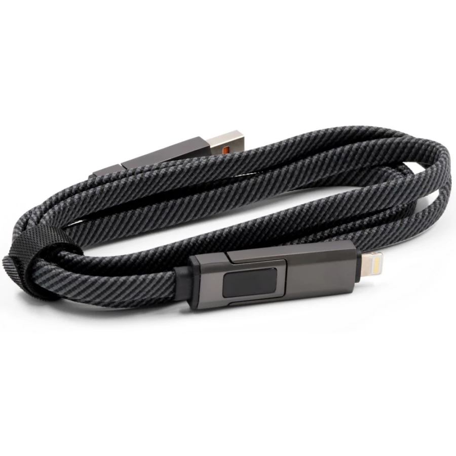 Ladekabel BrandCharger Thor Eco, 120 cm, Eingang USB-C, USB-A, Ausgang: USB-C, Anschluss kompatibel mit iOS-Geräten, maximale Leistung USB-C zu USB-C: 65W, USB-C zu Anschluss kompatibel mit iOS: PD 27W, USB-A zu USB-C: PD 27W, USB-A zu Anschluss kompatibel mit iOS-Geräten: PD 12W, Produkt aus Metall, TPE und Nylon ...