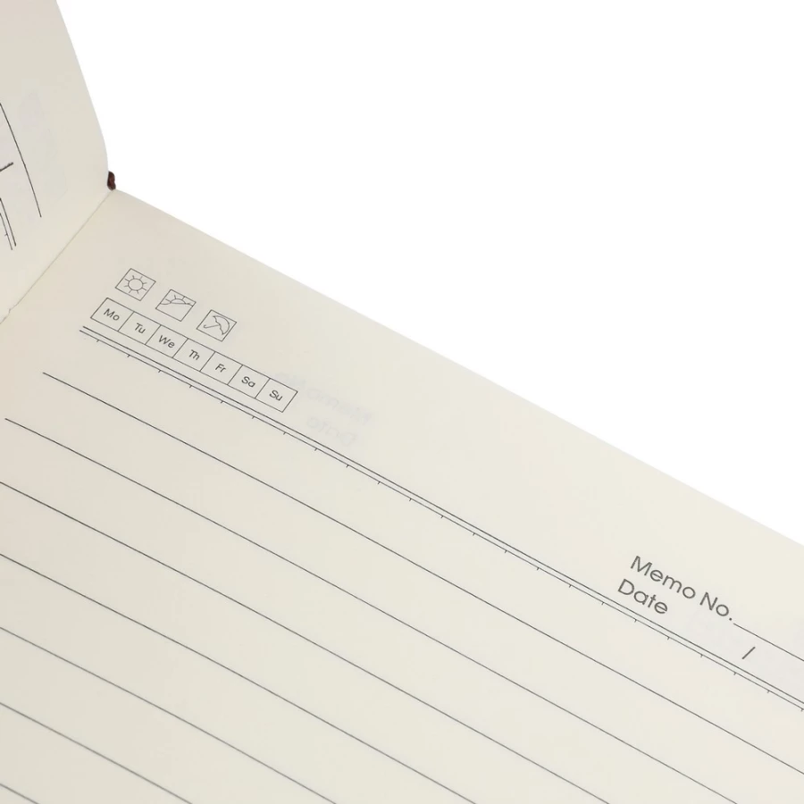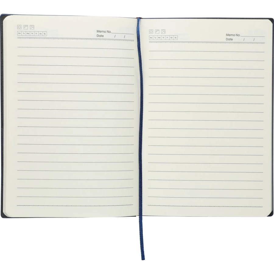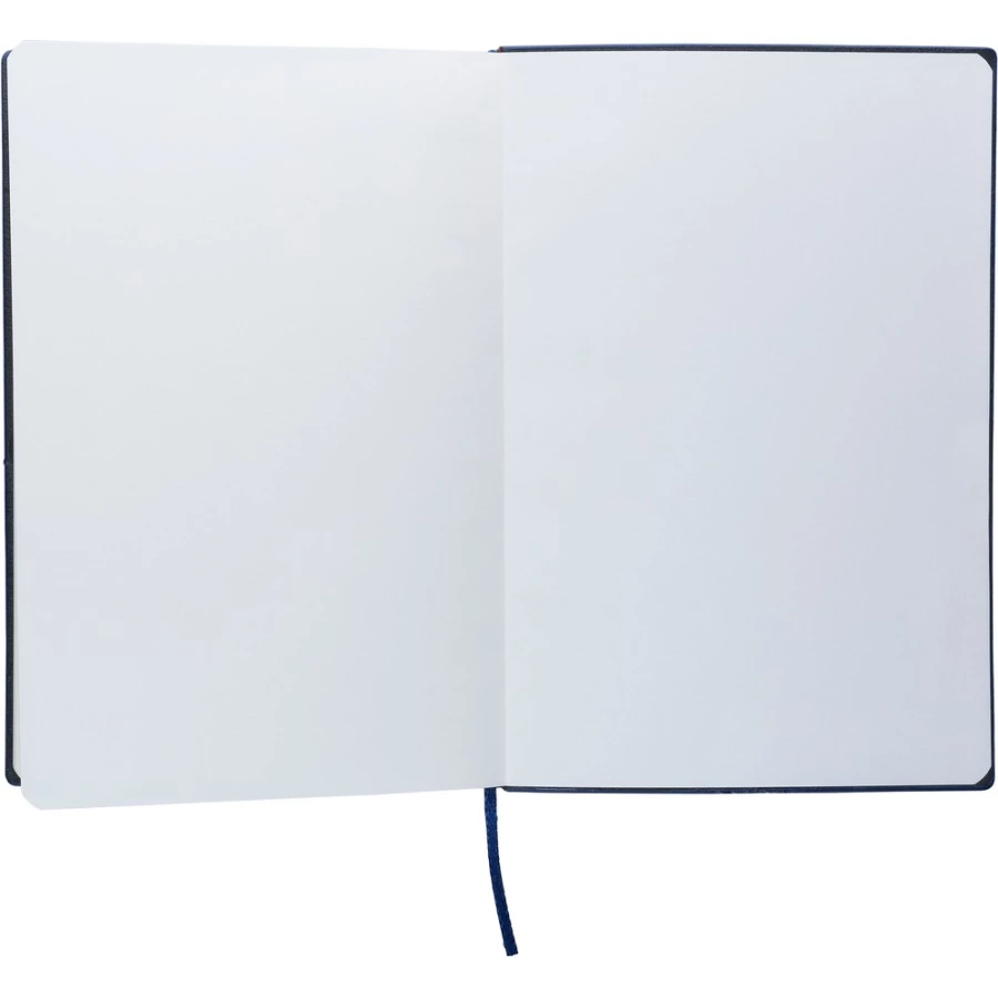 Notizbuch ca. A5, 100 linierte Seiten (80 g/m²), harter Umschlag mit Cord‑Look, Lesezeichen‑Bändchen, Recycling‑Symbol, Material: PU