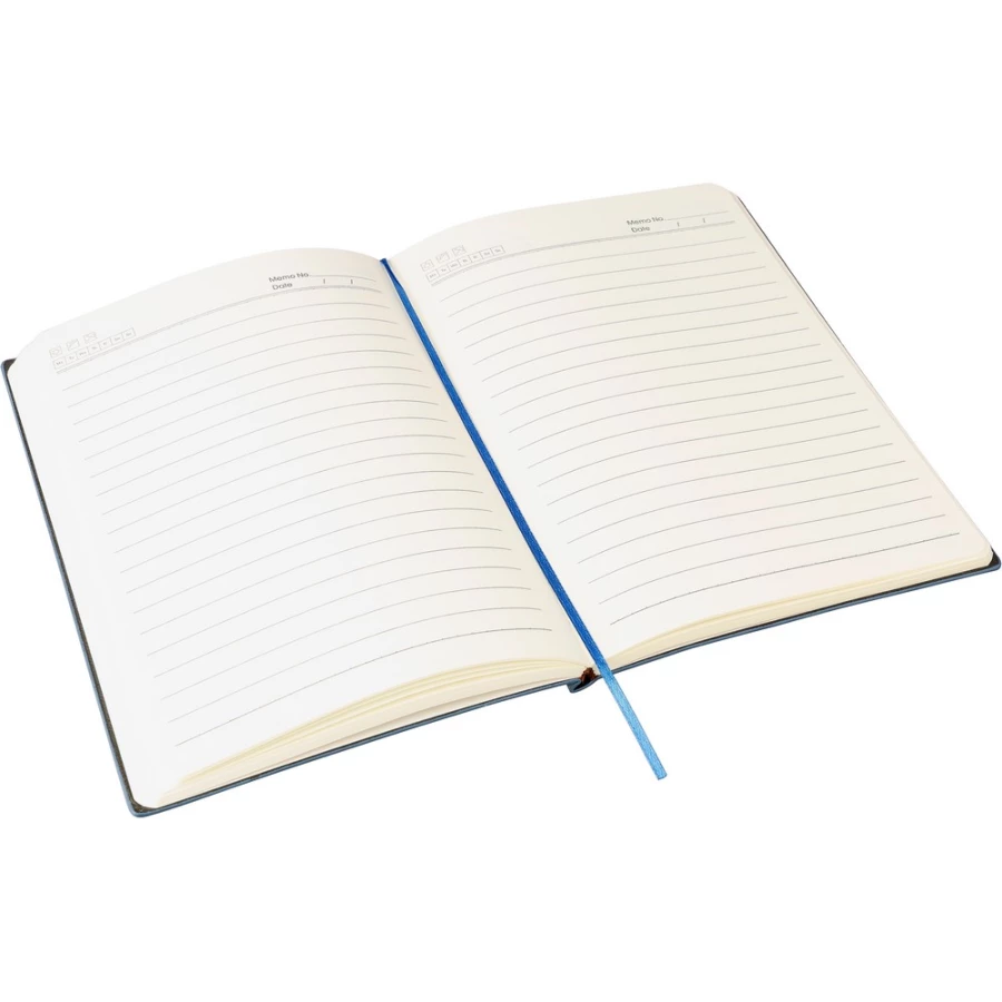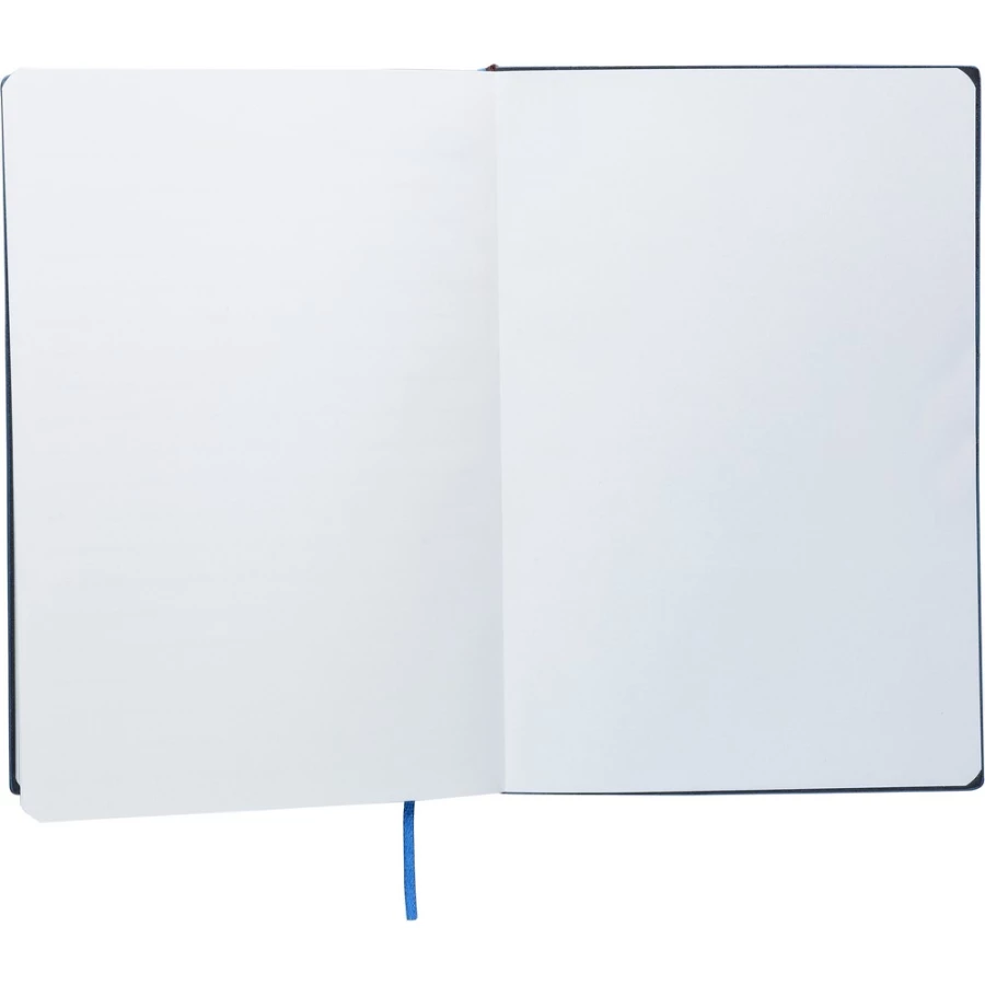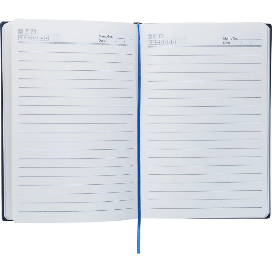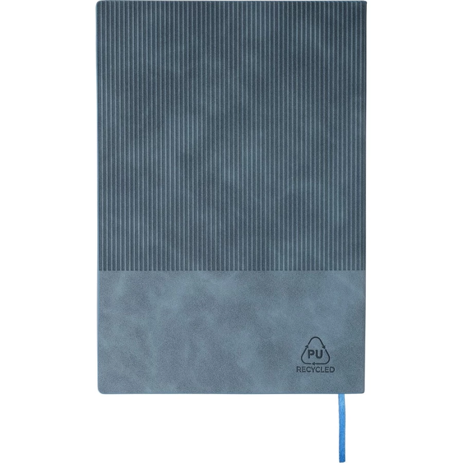 Notizbuch ca. A5, 100 linierte Seiten (80 g/m²), harter Umschlag mit Cord‑Look, Lesezeichen‑Bändchen, Recycling‑Symbol, Material: PU