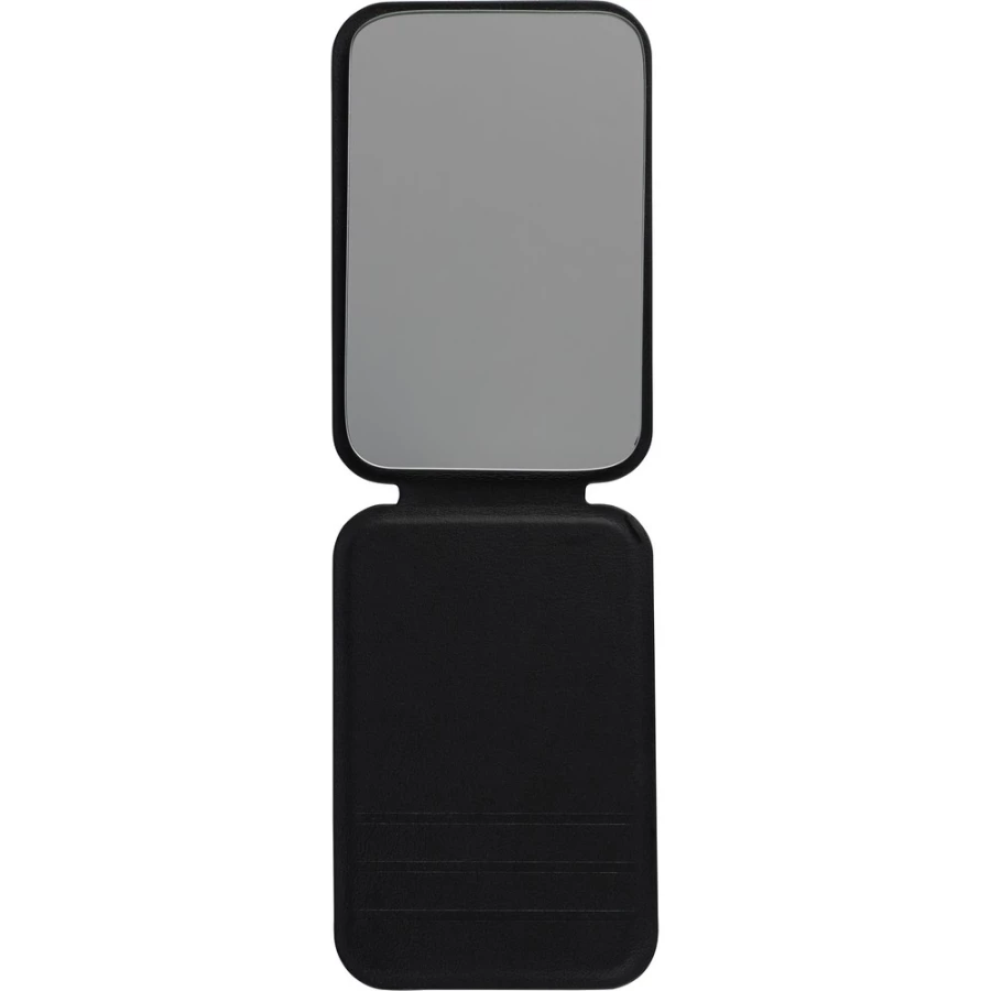 Rechteckiger Spiegel, Recycling-Symbol auf dem Produkt, verpackt in einer Papiertüte, Produkt aus Glas mit Gehäuse aus recyceltem PU