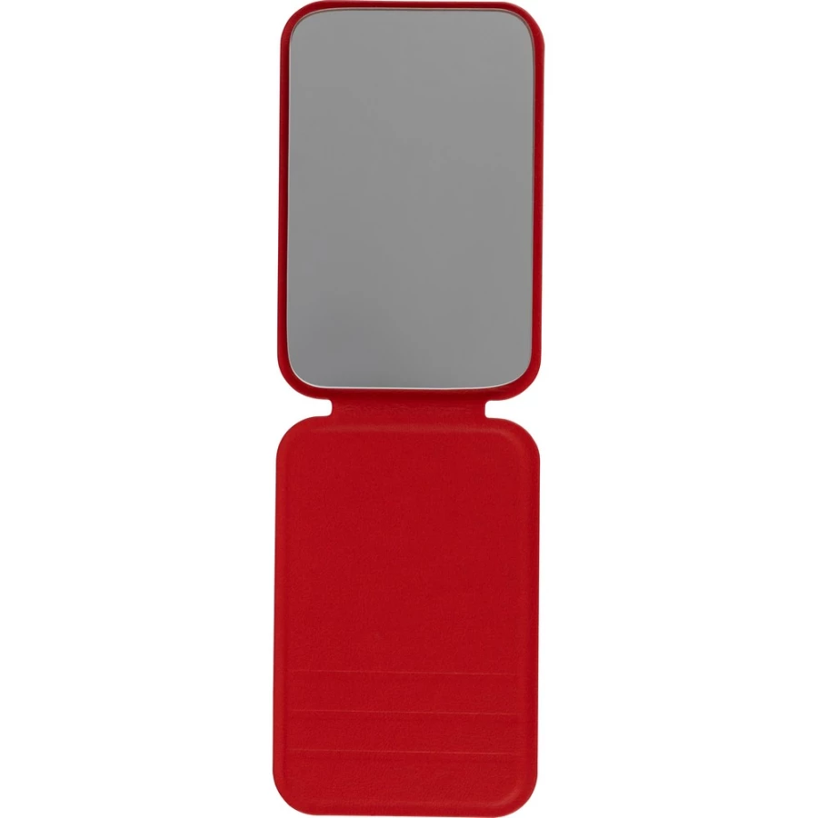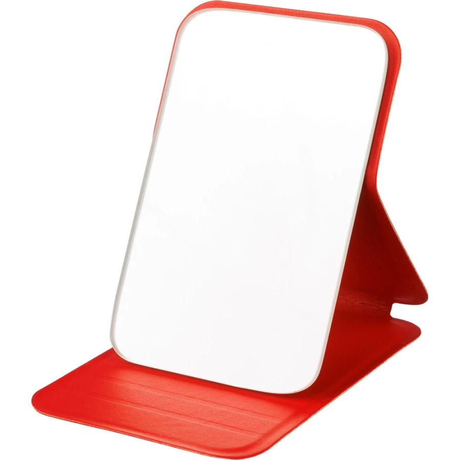 Rechteckiger Spiegel, Recycling-Symbol auf dem Produkt, verpackt in einer Papiertüte, Produkt aus Glas mit Gehäuse aus recyceltem PU