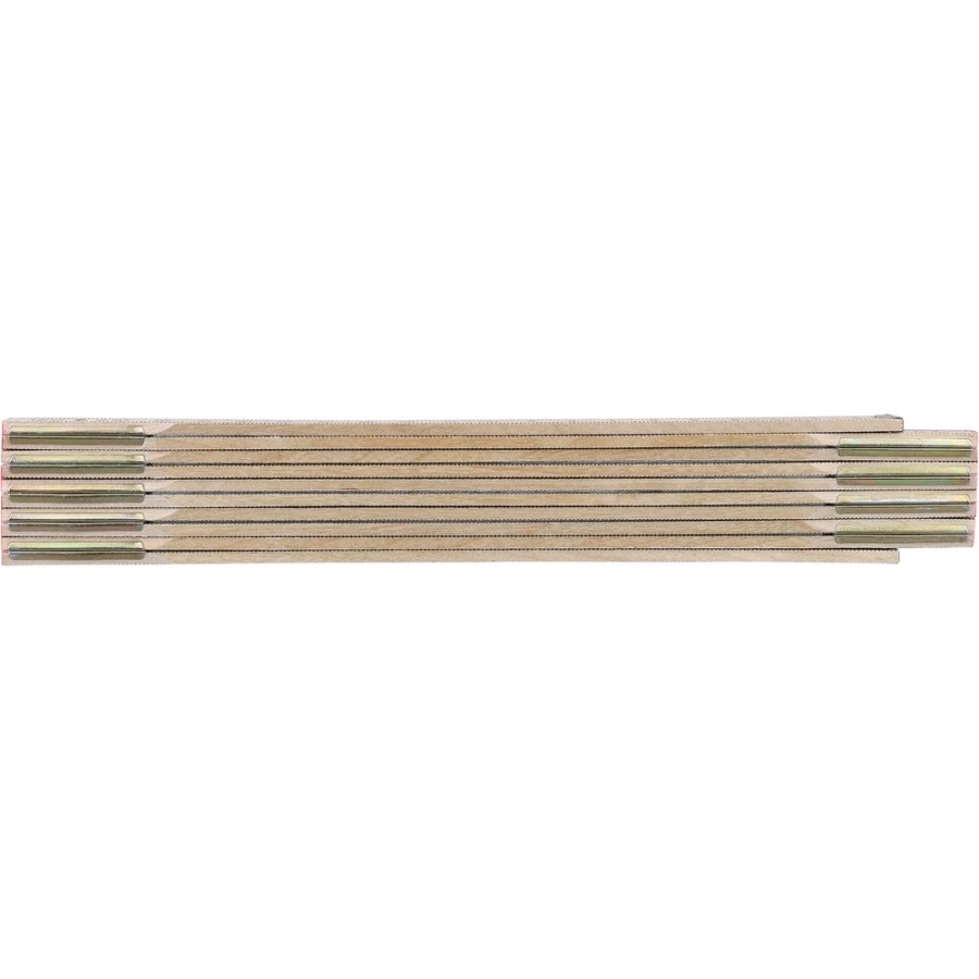 Zollstock 2m, klappbar, Messung in cm, 10 Segmente, Stahl-Scharniere, Eckverschluss, verpackt in einem Papierschlauch, Produkt aus Stahl und Birkenholz