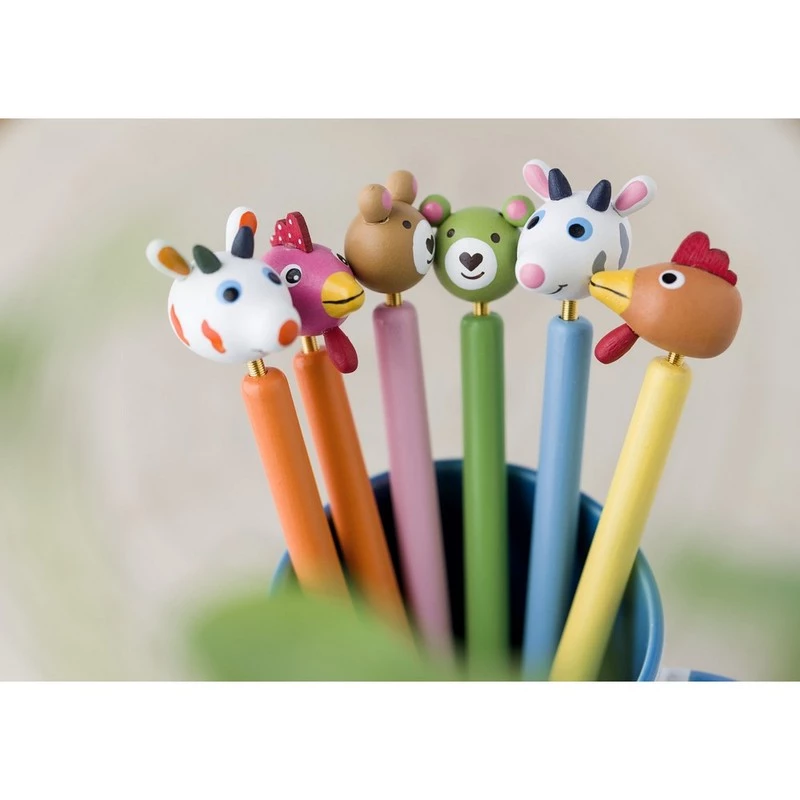 Ball pen "animal" coloured barrel, available in 6 different designs, sold randomly, writes in blue, product made of wood and iron