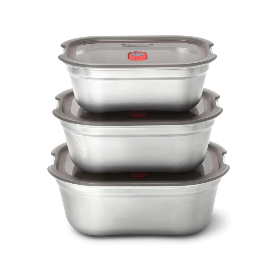This set of three microwavable stainless steel meal prep boxes is designed for everyday use—lightweight, durable, and airtight. Whether for breakfast, lunch, or snacks, they’re ideal for food storage, on-the-go lunches, or oven-to-table meals. Each container features an innovative microwave-safe steel construction, with a vacuum-sealed, leak-proof lid that keeps food fresher for longer. The semi-transparent lid lets you see what’s inside at a glance, while the high-quality stainless steel base is dishwasher-, freezer-, ...