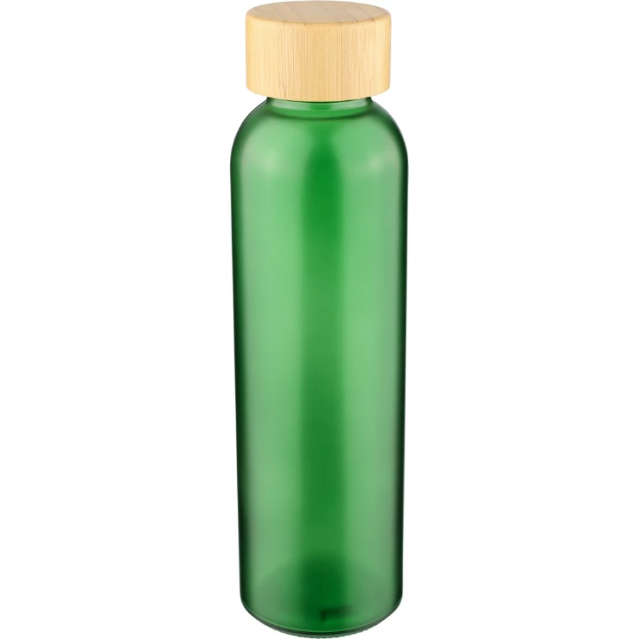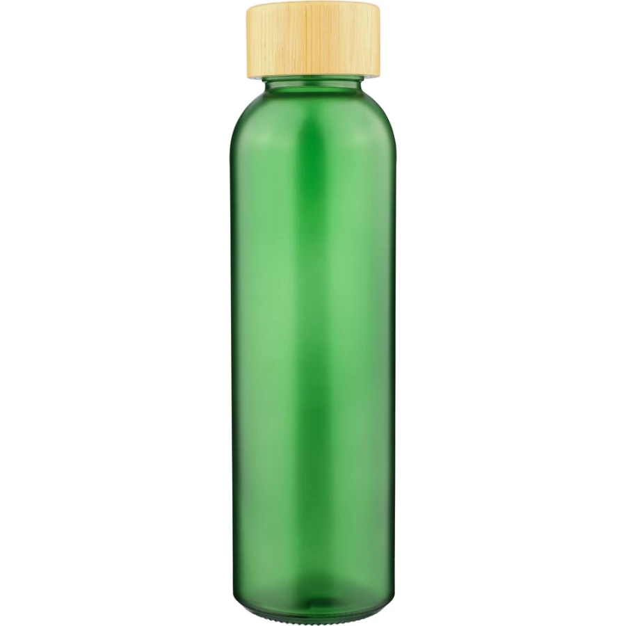 Glass bottle 500 ml with bamboo lud, frosted coated body, packed individually in brown carton box