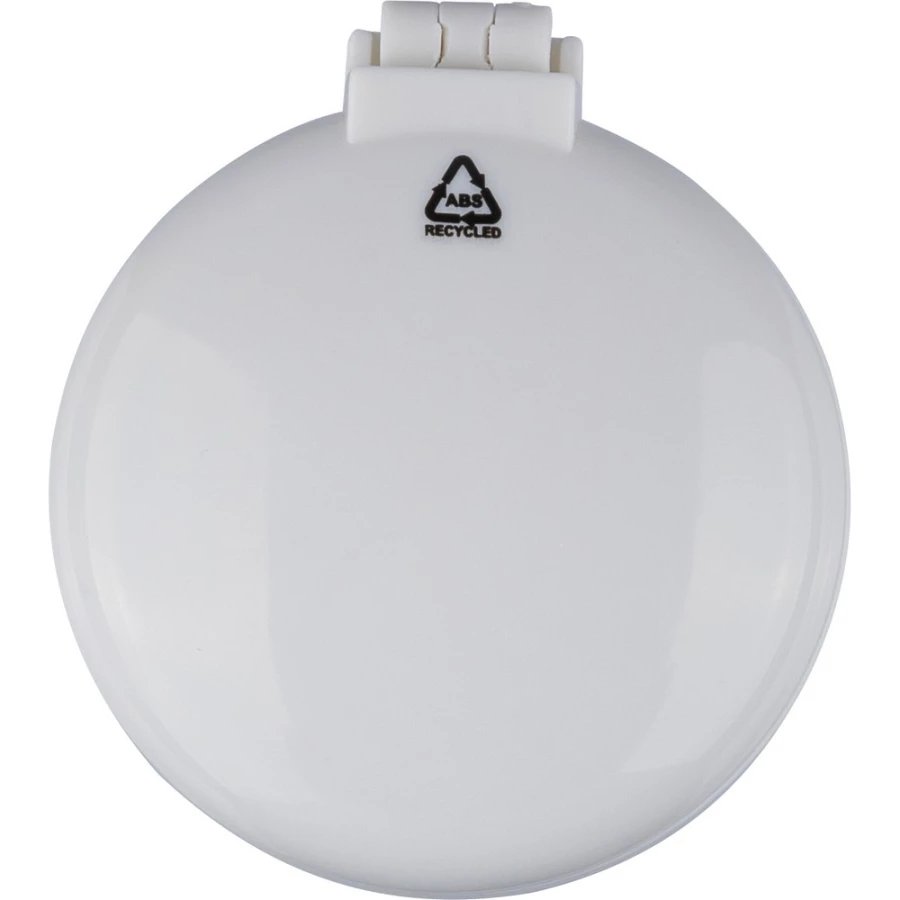 Hairbrush, mirror, includes recycled icon on product, packed in recycled polybag, product made from recycled ABS