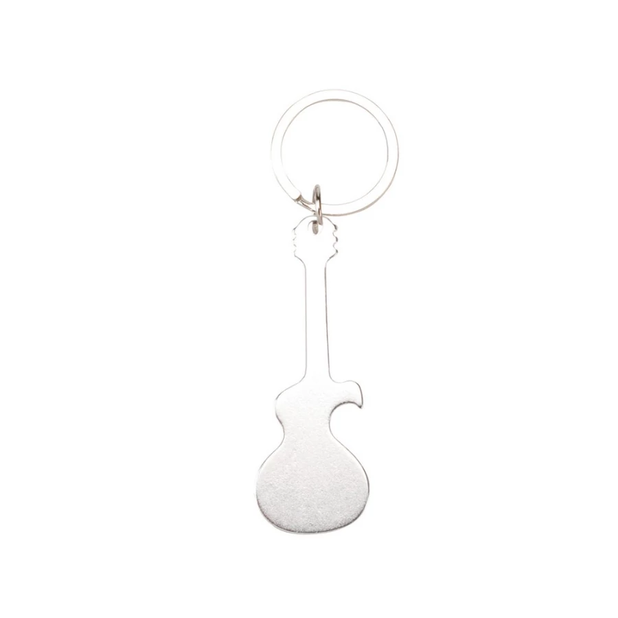 Guitar-shaped keychain with aluminum body in varied and bright tones. especially designed for laser printing.