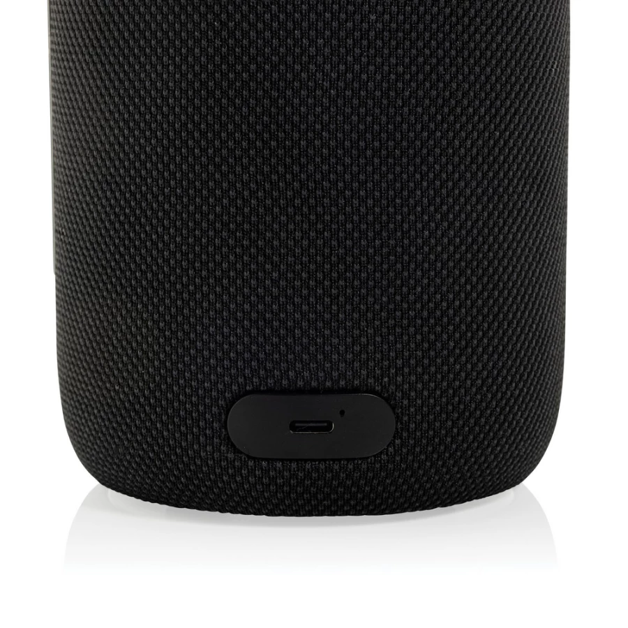 The Lux 10W RCS recycled speaker lamp combines modern design with high-quality audio and versatile lighting, making it a stylish addition to any space. Its sleek black body, made from RCS recycled ABS and PET, houses a powerful 10W speaker with BT 5.3 connectivity and a 2000 mAh rechargeable Li-ion battery. With an input of 5V 0.1–2A, the battery charges in just 4 hours and provides up to 7 hours of playtime at 50% volume. The lamp features 8 LEDs with cold, normal, and warm light modes, producing 32–38 lumens and operati ...