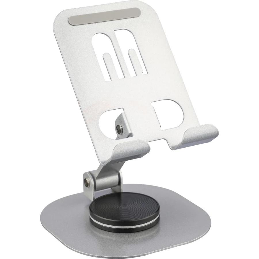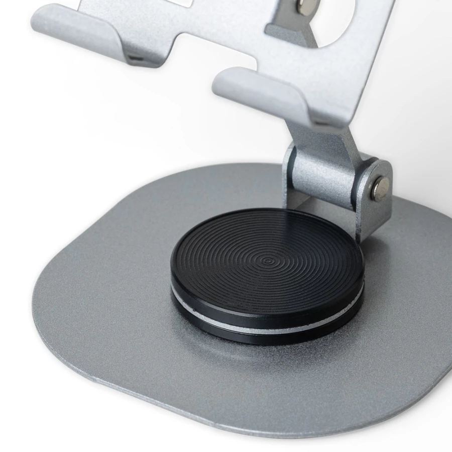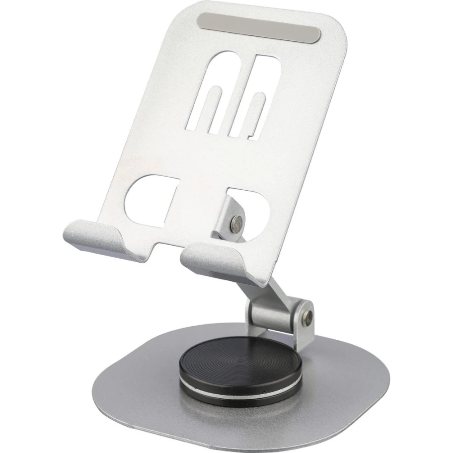 Phone stand with 360 degrees rotation function, can be folded to flat, packed in a white box, product made from aluminium