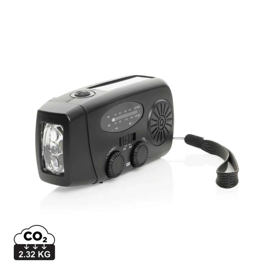 Stay prepared for any situation with RescueWave, a versatile emergency radio designed to keep you connected and powered. Featuring AM/FM radio, solar panel, an integrated 1W torch, USB output and USB C input, this compact device ensures you're equipped for unexpected moments. With a built-in 1800mAh battery, RescueWave can charge your phone, providing crucial power when you need it most. The hand crank mechanism offers dependable functionality—just 1 minute of cranking supports 5 minutes of radio or 30 minutes of torchlight ...