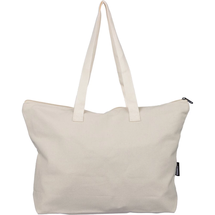 Shopping bag 330 g/m², large, zippered compartment, long handles for carrying the bag on the shoulder (65 x 2,5 cm), includes RPET icon on tag, product made from recycled polycotton, polyester and RPET