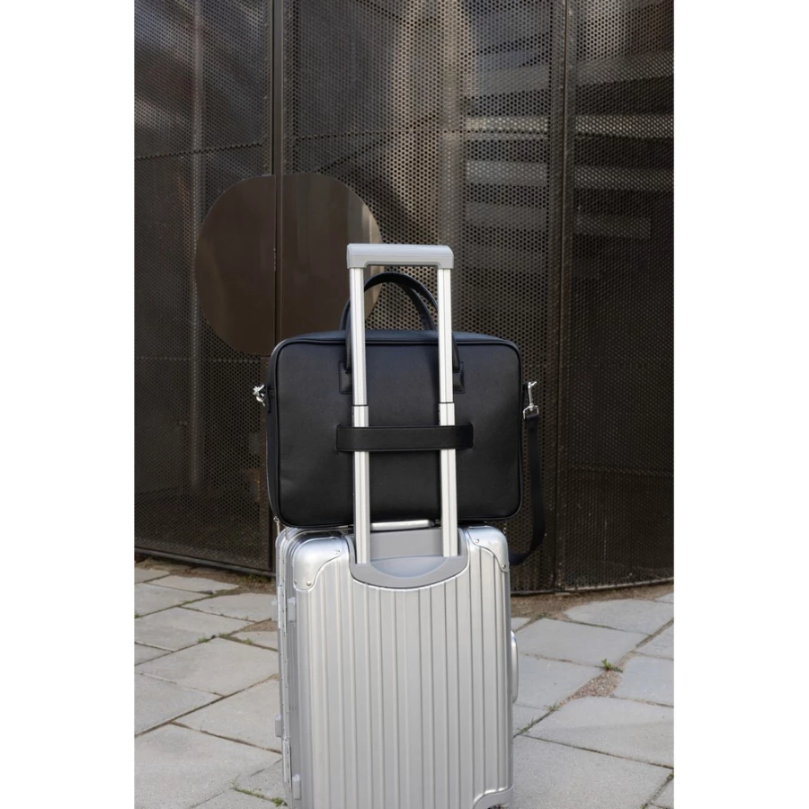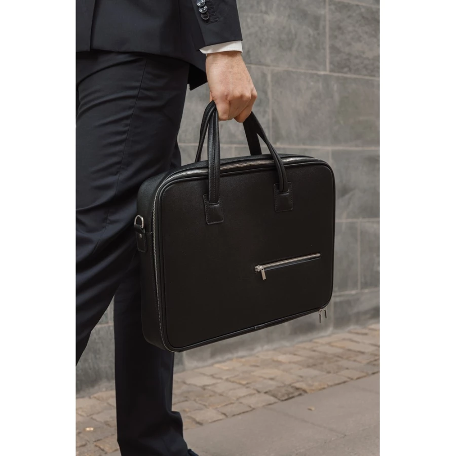 This stylish laptop bag is designed to protect your laptop while offering practical solutions for your everyday needs. It features an extra-wide opening for easy access. The bag has sturdy handles for a comfortable grip and an adjustable shoulder strap for flexible and comfortable carrying, whether you’re heading to the office, a meeting, or traveling. Fits most laptops up to 15". Please note: Display dimensions may vary from laptop dimensions. Certified by RCS (Recycled Claim Standard), RCS certification guarantees that th ...