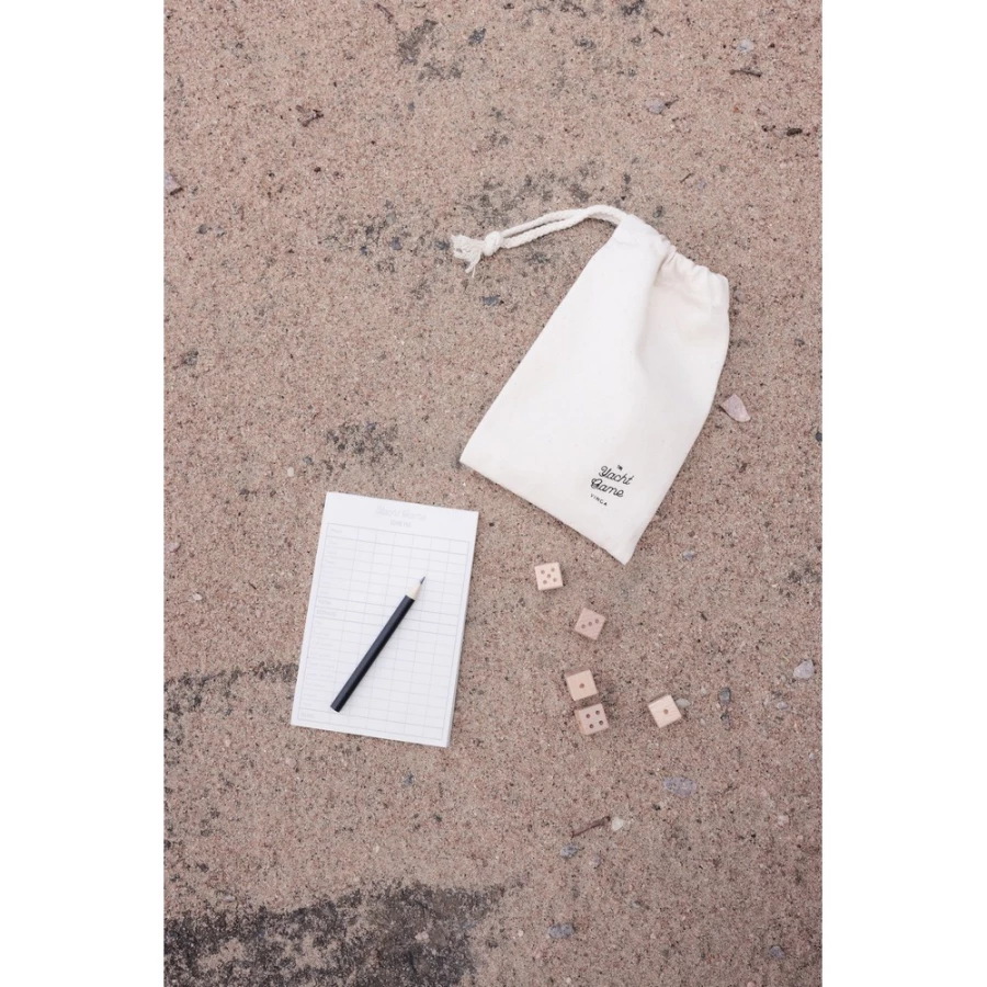 A timeless game that’s perfect for leisurely days in the garden, at the beach, or during summer picnics – and why not during your lunch break at work? The goal is simple: score as many points as possible by throwing and combining dice in various ways. The game includes five standard-sized dice crafted from FSC® certified pine wood as well as a notepad and pen to keep score. Everything comes in a practical cotton bag, making it easy to take with you anywhere. An instruction manual is included.. ...