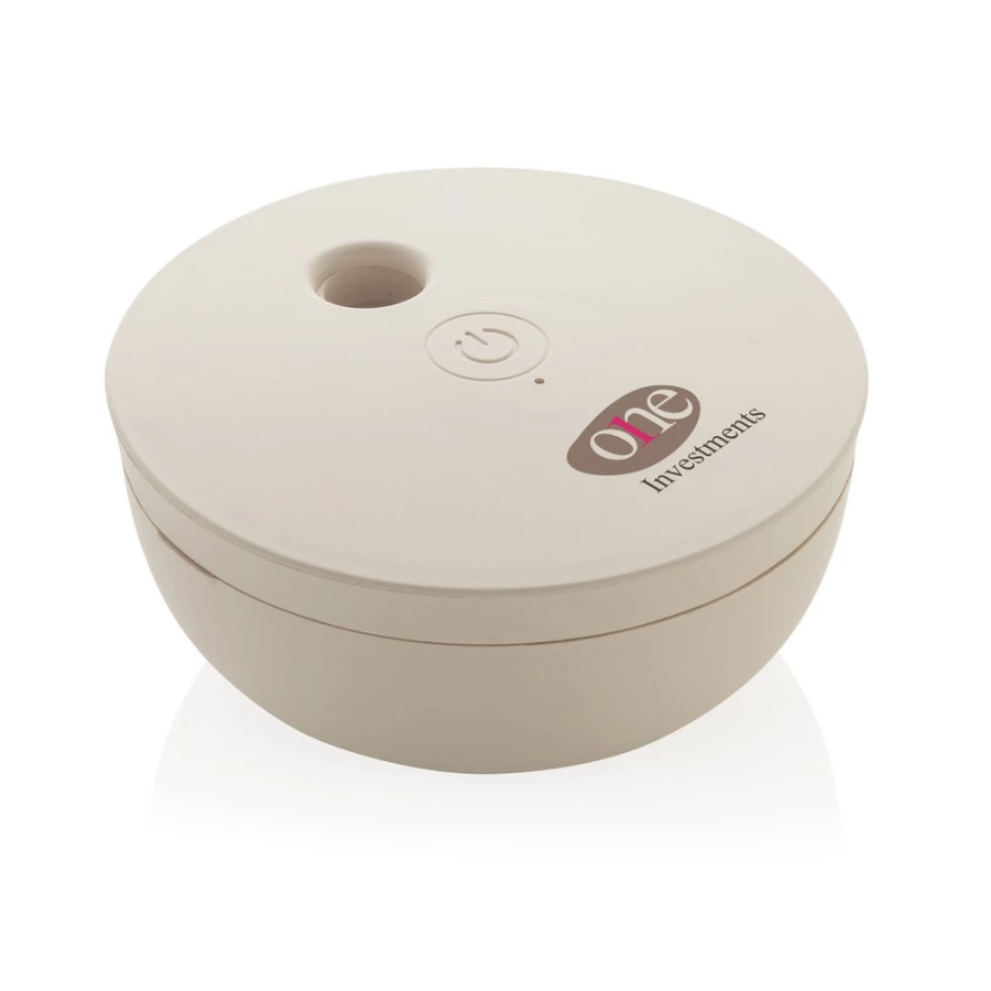 Nawilżacz powietrza, dzięki specjalnej konstrukcji nawilżacz unosi się na powierzchni wody, można umieścić go w szklance, wazonie czy też misce, do 6 godzin pracy na jednym ładowaniu, wykonany z materiałów z recyklingu, całkowita zawartość materiałów z recyklingu obliczona na podstawie wagi całkowitej przedmiotu: 51% ...