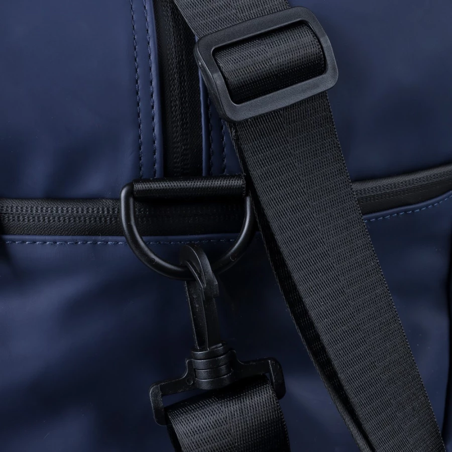 Torba sportowa, podróżna o pojemności 35 litrów, długie uchwyty do noszenia na ramieniu (2,5 × 108 cm) z zapięciem na rzep, regulowany pasek na ramię (3,9 × 130 cm), mała przednia kieszeń zapinana na zamek, duża główna komora zapinana na zamek, ikona recyklingu na metce, produkt wykonany z PU z recyklingu z podszewką z recyklingowego poliestru 210D ...
