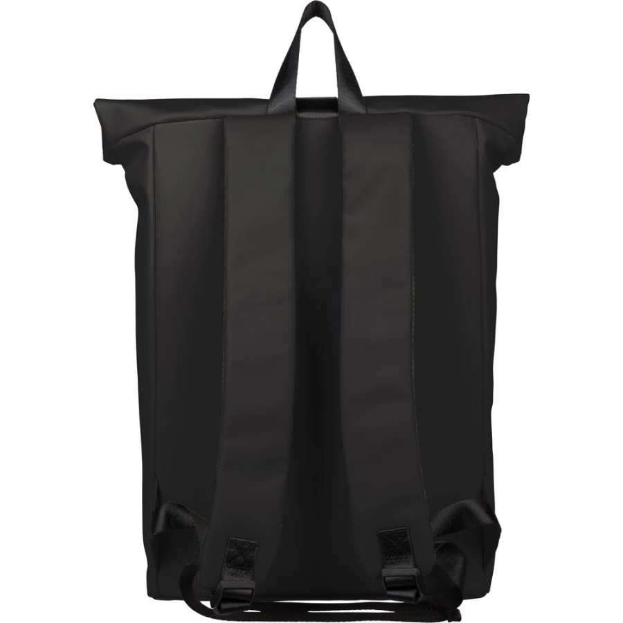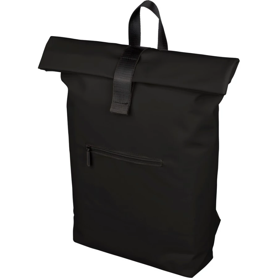 Zwijany plecak o pojemności 19 litrów, mała kieszeń zapinana na zamek z przodu, zwijana główna kieszeń zamykana na rzep, przegroda na laptopa 16" w środku, regulowane wentylowane paski na ramię, uchwyt z wierzchu ułatwiający noszenie, podszewka z poliestru 210D, ikona recyklingu na metce, produkt wykonany z PU z recyklingu i poliestru ...