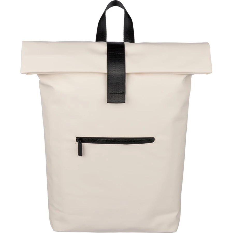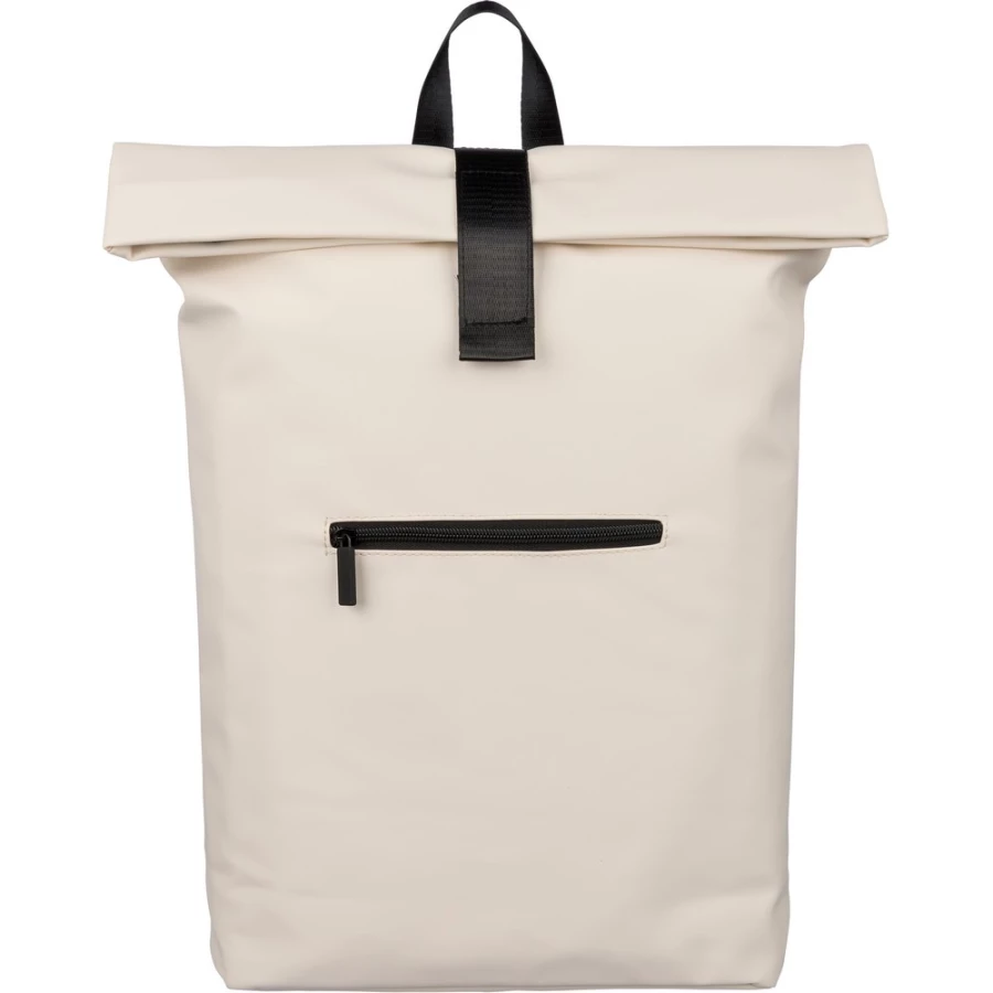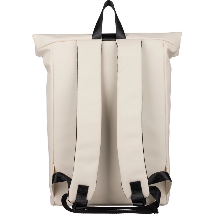 Zwijany plecak o pojemności 19 litrów, mała kieszeń zapinana na zamek z przodu, zwijana główna kieszeń zamykana na rzep, przegroda na laptopa 16" w środku, regulowane wentylowane paski na ramię, uchwyt z wierzchu ułatwiający noszenie, podszewka z poliestru 210D, ikona recyklingu na metce, produkt wykonany z PU z recyklingu i poliestru ...